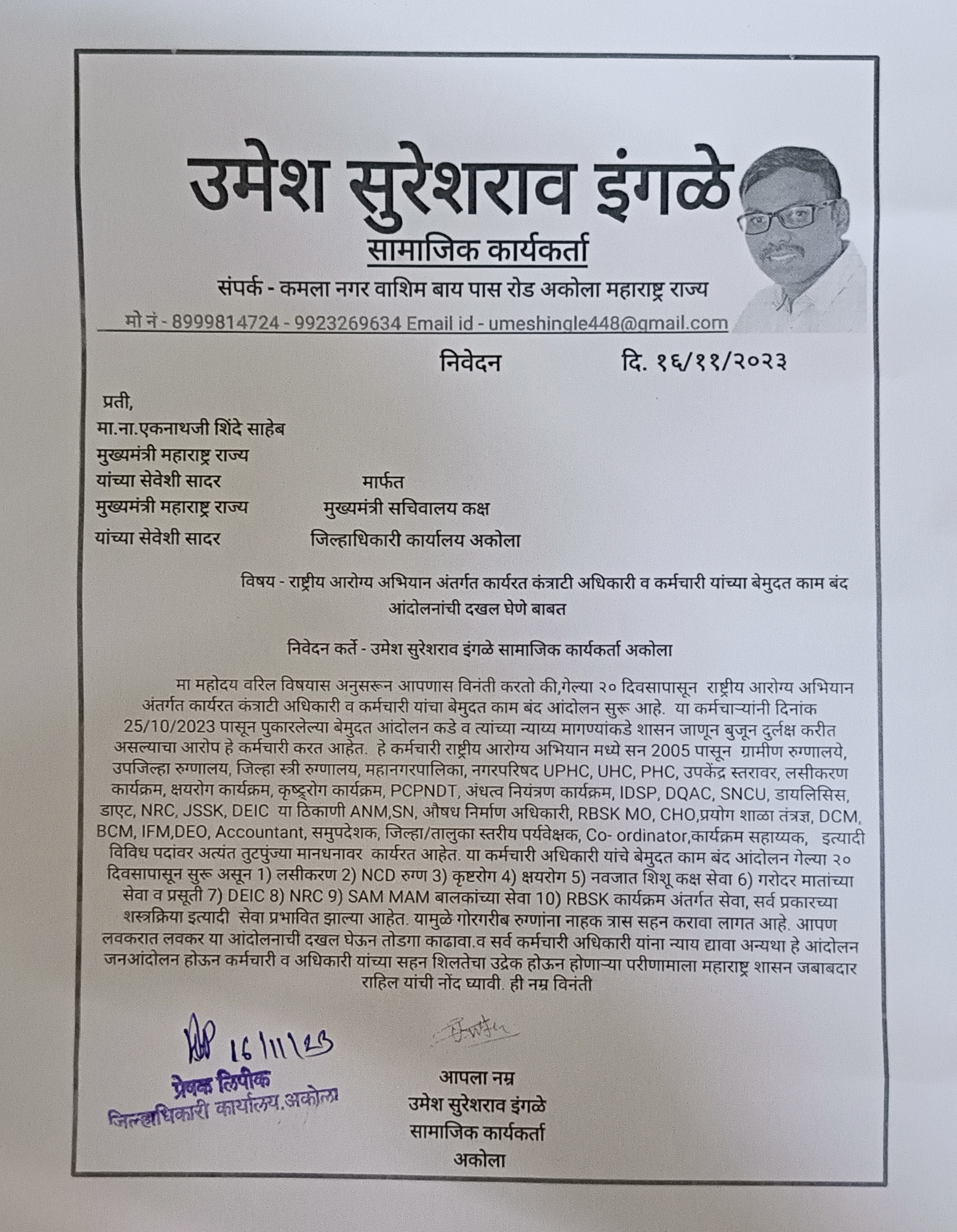 अकोला प्रती - गेल्या २५ दिवसापासून राष्ट्रीय आरोग्य अभियान अधिकारी व कर्मचारी…
