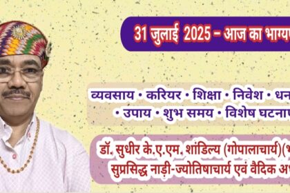 31 जुलाई 2025 – आज का भाग्यफल : डॉ. सुधीर के.ए.एम. शांडिल्य (गोपालाचार्य)(भारत के सुप्रसिद्ध नाड़ी‑ज्योतिषाचार्य एवं वैदिक अध्येता 🌟 व्यवसाय…