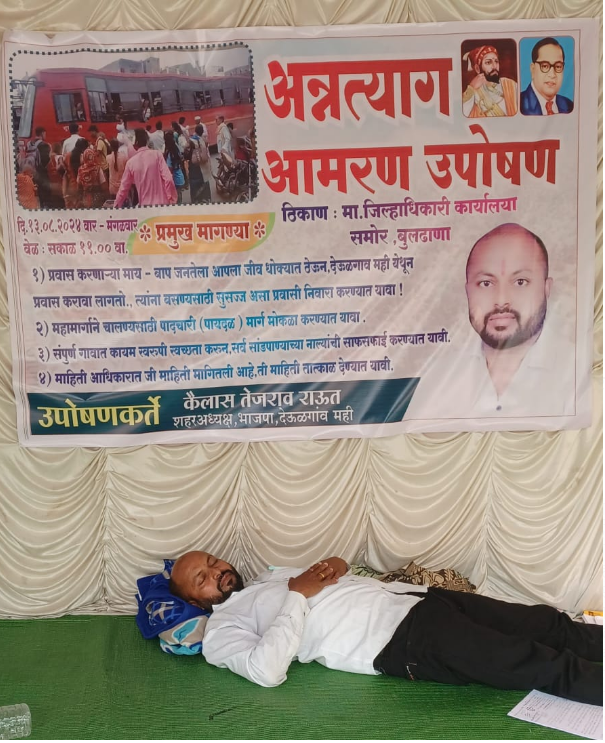 प्रवासी निवारा व पैदल चालण्यासाठी सर्वसामान्यांना महामार्गावर रस्ता यासाठी तिसरा दिवस अन्नत्याग आमरण उपोषण