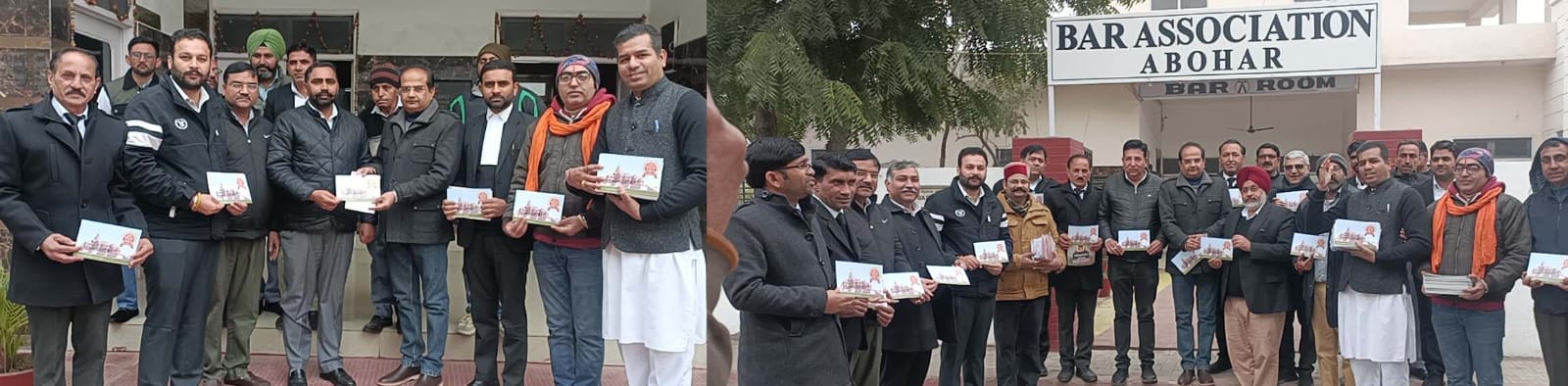 विश्व हिंदु परिषद् ने बार एसोसिएशन के प्रधान लखविंद्र सिंह सिद्धू व एडवोकेट हरप्रीत सिंह सहित अन्य वकीलों को बांटे पीले अक्षत