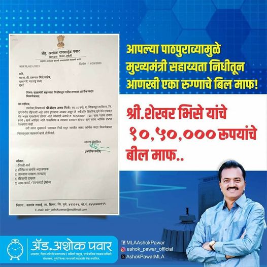 श्री.शेखर भिसे यांचे ऑपरेशन मोफत होऊ शकले याचे मनस्वी समाधान वाटते