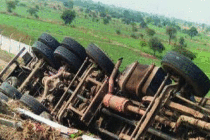 चालकाला झोपेची डुलकी लागल्याने ट्रक पलटी; चालक किरकोळ जखमी
