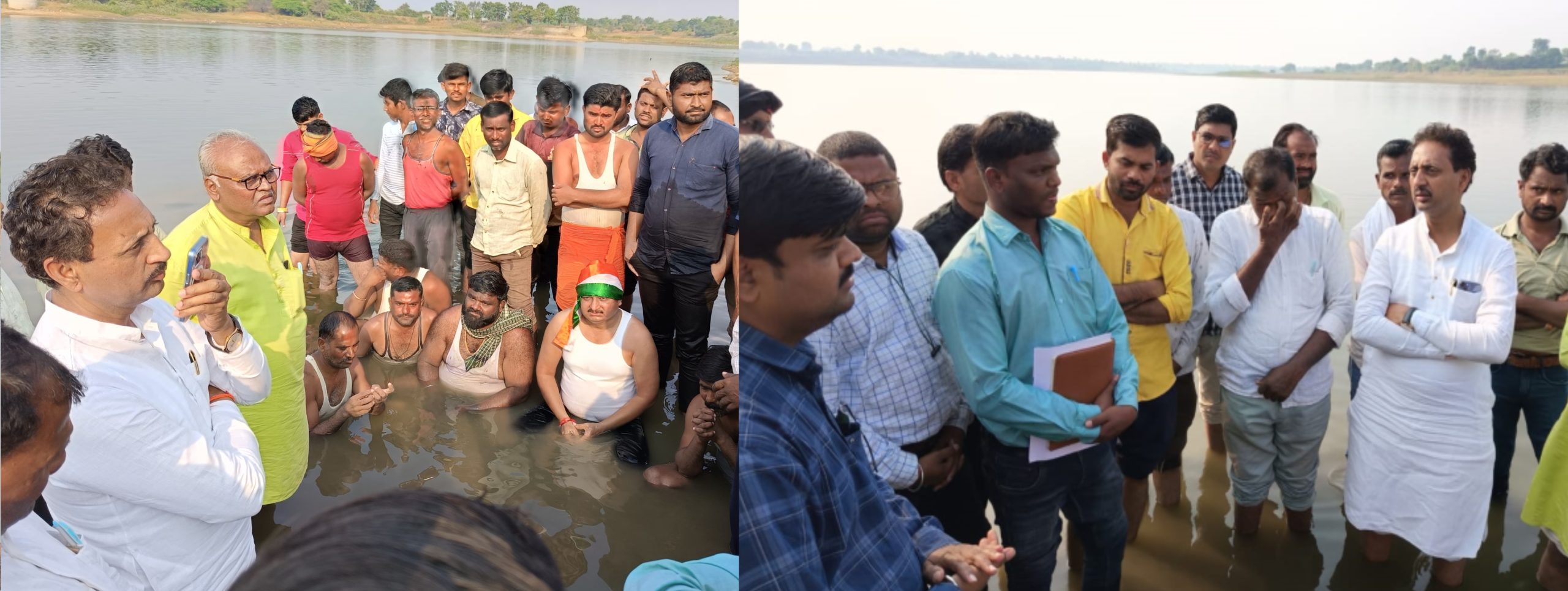 विज वितरणच्या गलथान कारभारामुळे जलसमाधी घेण्याची आली पाळी शेतक-यांच्या मदतीला राहुलभाउ बोंद्रे धरणपात्रात गेले धावुन य आंदोलनाला तुर्त स्थगिती