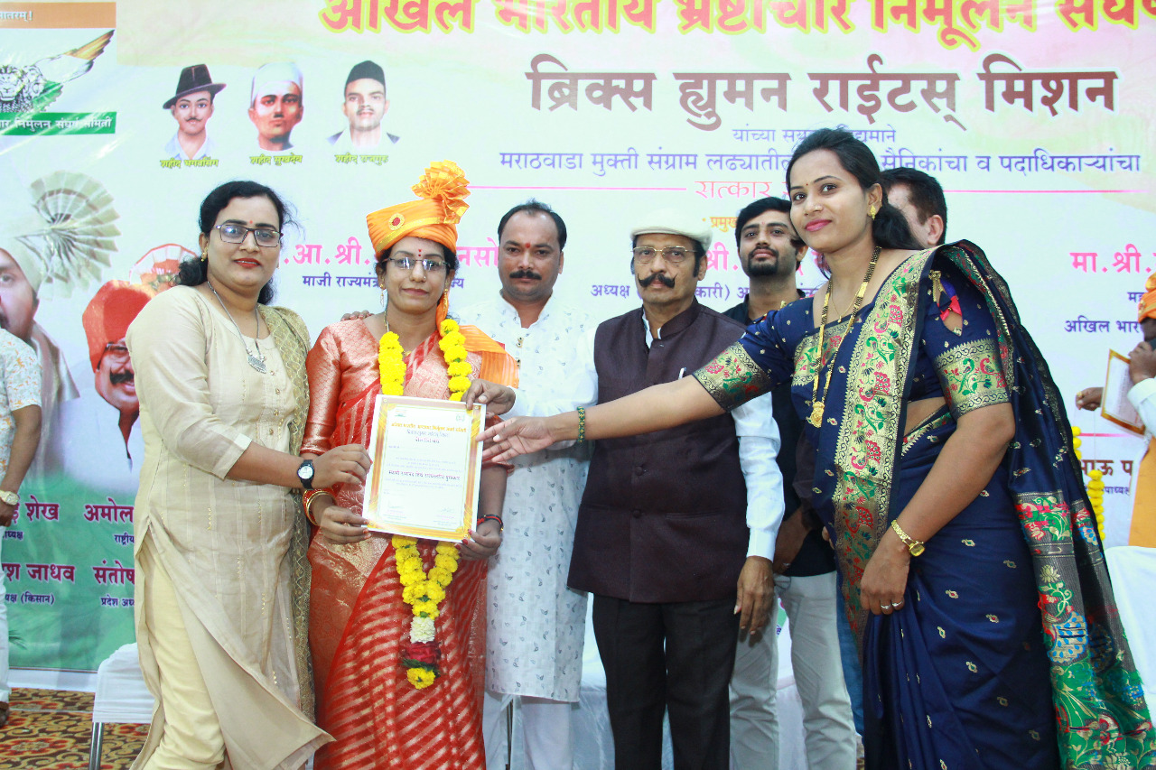 अखिल भारतीय भ्रष्टाचार निर्मुलन संघर्ष समिती महाराष्ट्र राज्य यांच्या वतीने देण्यात येणारा स्वामी रामानंद तीर्थ राज्यस्तरीय पुरस्कार यावर्षी श्रीमती अंजनाताई राजपूत यांना देण्यात आला.