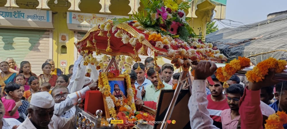 टाळकरी मृदुगाच्या तालावर हरिनामाच्या गजरामध्ये पालखीची गावातून मिरवणूक…
