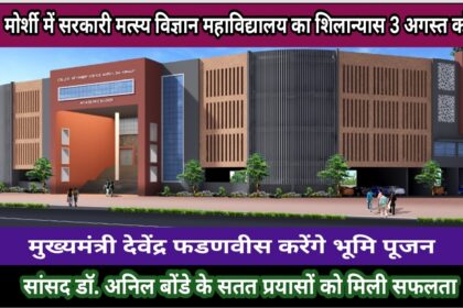 मोर्शी में सरकारी मत्स्य विज्ञान महाविद्यालय का शिलान्यास 3 अगस्त को मुख्यमंत्री देवेंद्र फडणवीस करेंगे भूमि पूजन | सांसद डॉ. अनिल बोंडे के सतत प्रयासों को मिली सफलता