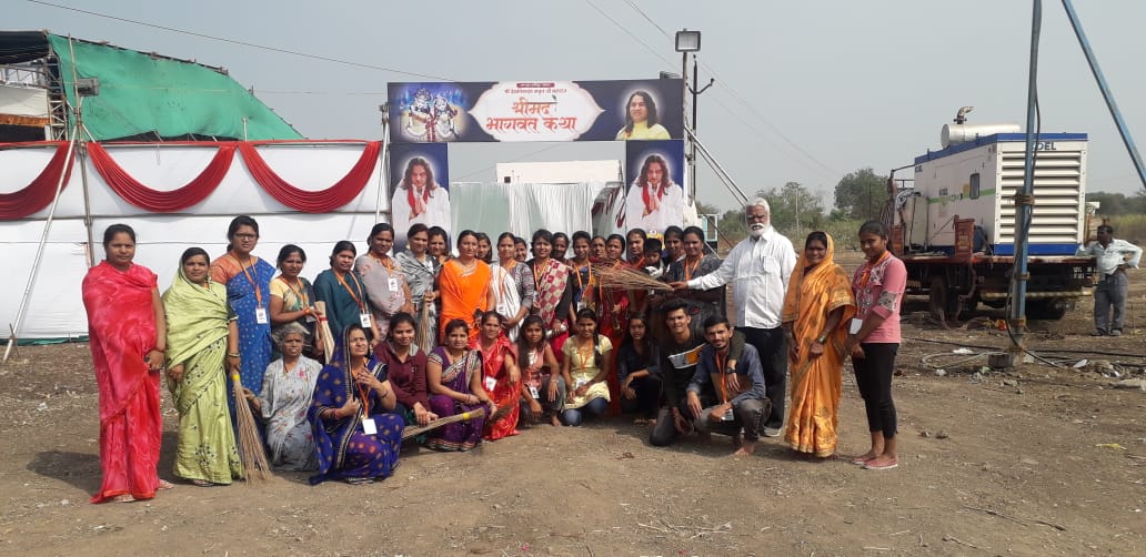 श्रीमद भागवत कथा स्थान स्वच्छ करणाऱ्या सेवेकरी महिला