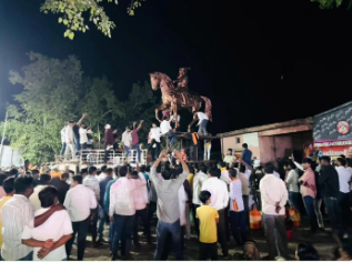 चिखला गावात २० फुटांचा भव्य अश्वारूढ छत्रपती शिवाजी महाराजांचा पुतळा विराजमान