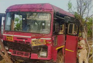 अनियंत्रित बसचा टळला अपघात रस्त्याच्या कडेला झाडावर आदळली एसटी