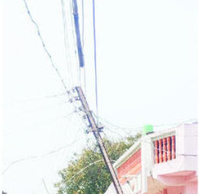 नागणगाव येथील वीज खांब बनला धोकादायक