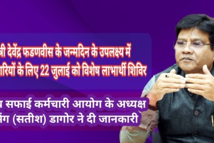 मुख्यमंत्री देवेंद्र फडणवीस के जन्मदिन के उपलक्ष्य में सफाई कर्मचारियों के लिए 22 जुलाई को विशेष लाभार्थी शिविर