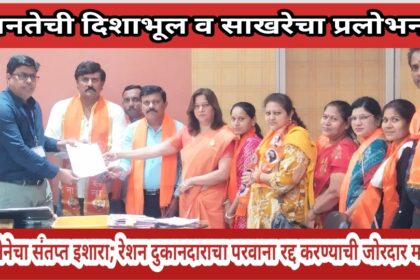 जनतेची दिशाभूल व साखरेचा प्रलोभन — शिवसेनेचा संतप्त इशारा; रेशन दुकानदाराचा परवाना…