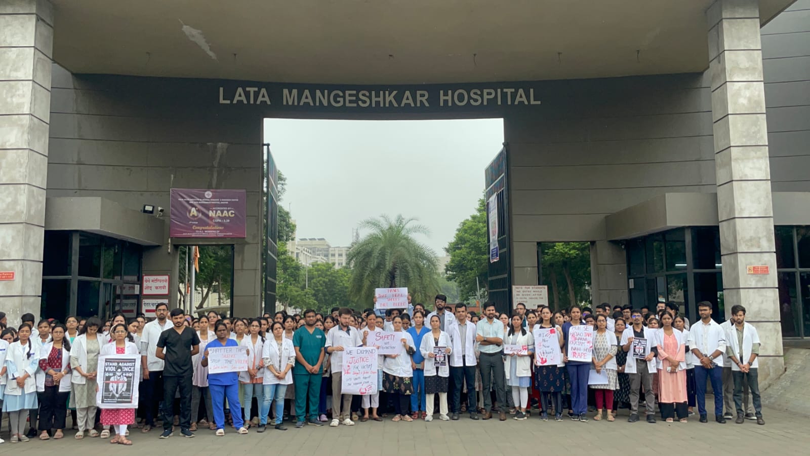 लता मंगेशकर अस्पताल में कोलकाता केस को लेकर प्रदर्शन और मार्च