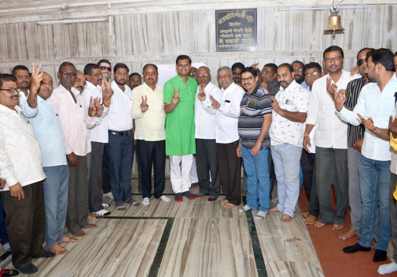 कवियित्री बहिणाबाई चौधरी उ.म.वि सिनेट निवडणूक विद्यापीठ विकास मंच च्या पॅनलचे शिंदखेडा येथे श्री.काशी विश्वेश्वर महादेव मंदिर येथे नारळ वाढवून प्रचारास शुभारंभ.