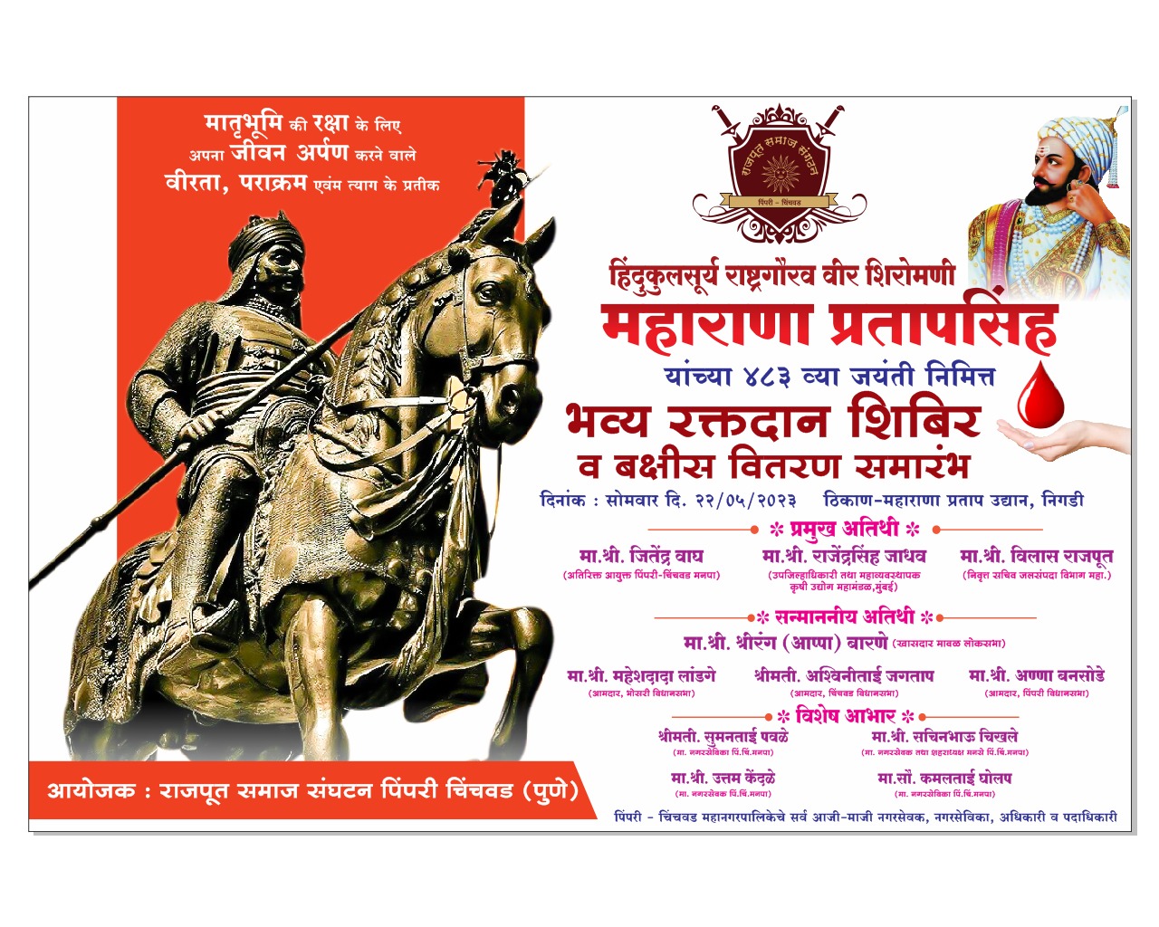 महाराणा प्रताप यांच्या ४८३ व्या जयंती निमित्त विविध कार्यक्रमांचे आयोजन