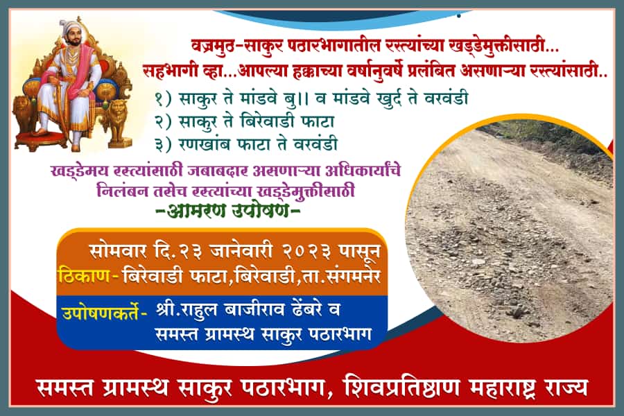 खड्डेमुक्तीसाठी २३ जानेवारी २०२३ पासुन साकुर पठार भागातील जनतेसह आमरण उपोषण….
