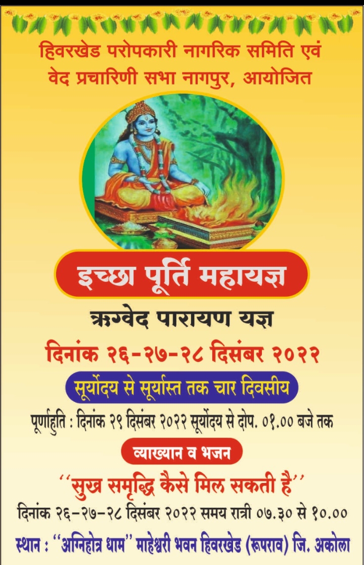 हिवरखेड येथे इच्छापूर्ती महायज्ञ, ऋग्वेद पारायण यज्ञचे भव्य आयोजन