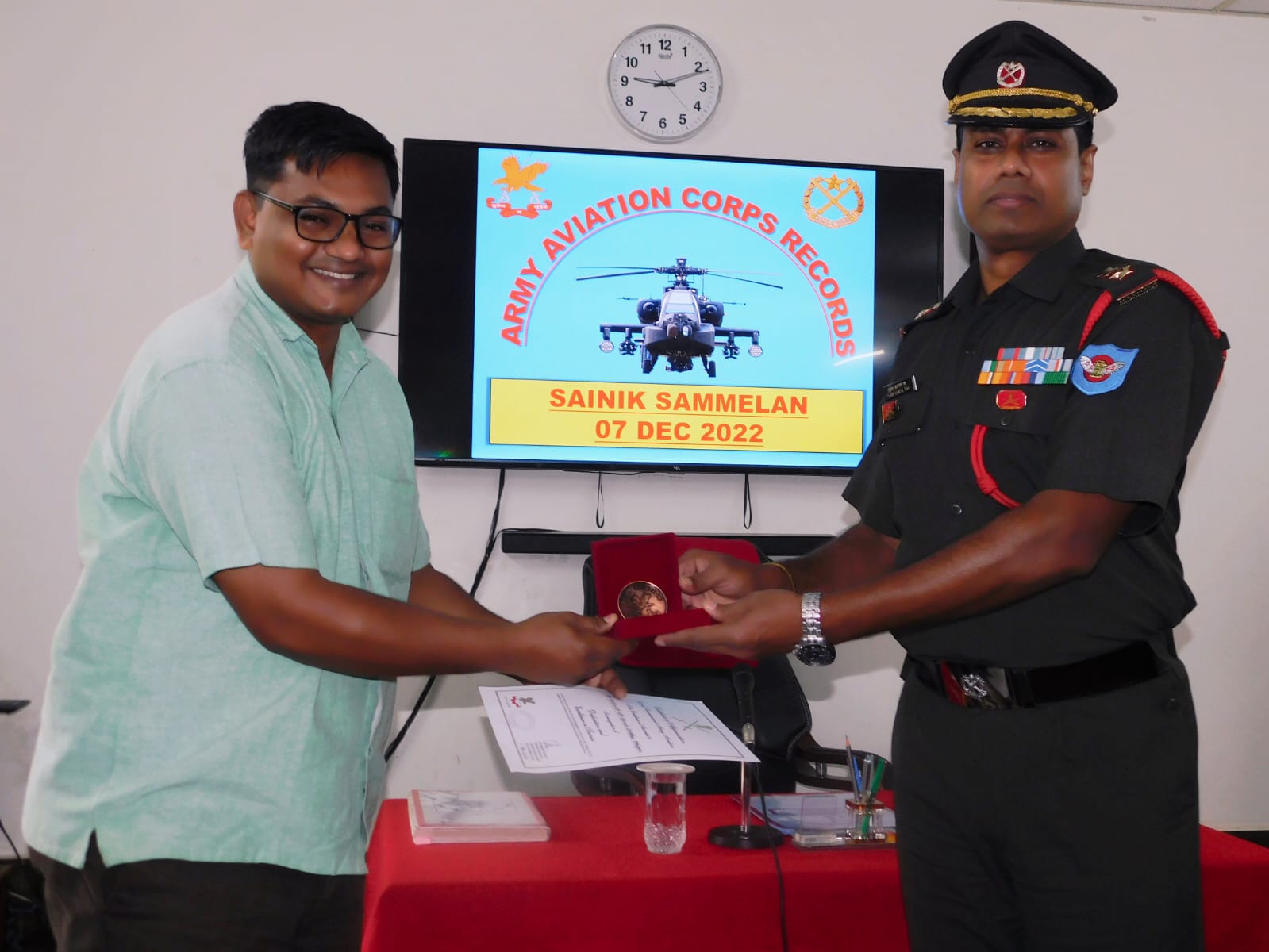 शेखर शिंदे यांना आर्मी अविएशनचे वरिष्ठ अधीकारी यांच्या हस्ते पुरस्कार देऊन करण्यात आले सन्मानित