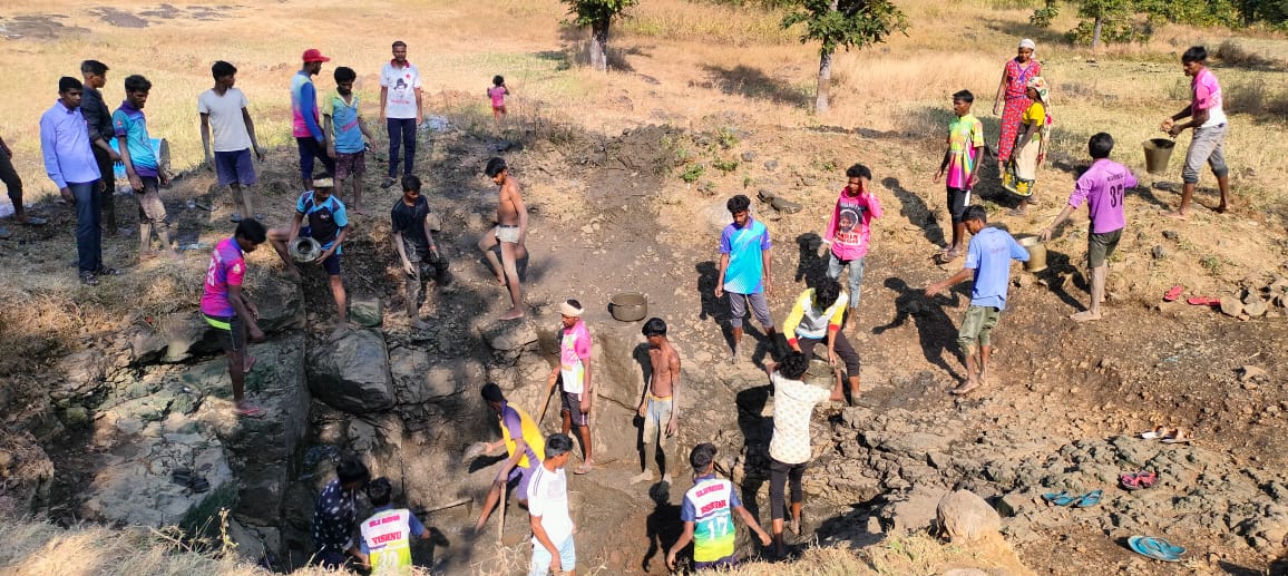पाणी टंचाईवर मात करण्यासाठी रिठीपाडा या गावातील ग्रामस्थांनी श्रमदानातून डबक्यातला गाळ काढला..