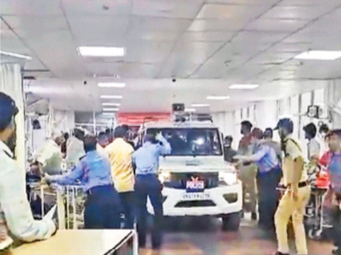 अटकेसाठी पाेलीस जीप रुग्णालयाच्या वाॅर्डमध्ये, अधिकाऱ्याला अटक, लैंगिक छळाचा आराेप