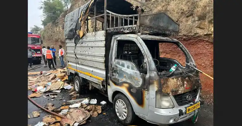 नवले पुलानजीक छोटा हत्ती टेम्पो जळून खाक, मुंबई बंगळुरू महामार्गावर या कारणाने झाला अपघात