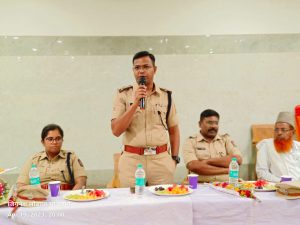 प्रतिनिधि महादेव तायडे कारंजा. सध्या मुस्लिम धर्मीयांचा पवित्र रमजान महिना सुरु आहे या महिन्यात मुस्लिम बांधव महिन्याभर उपवास ( रोजा ) ठेऊन आपल्या पवित्र नमाजाचे पठन उत्साहने करतात. दर वर्षी प्रमाने या वर्षी सुद्धा कारंजा शहर पोलिस स्टेशन तर्फे इफ्तार पार्टी चे आयोजन कारंजा येथील महेश भवन येथे करण्यात आले होते या कार्यक्रमा चे अध्यक्षस्थानी पोलीस जिल्हा अधीक्षक बच्चन सिंग हें होते तर प्रमुख उपस्थितीत होम डी वाय एस पी कार्तिका मॅडम, उप विभागीय पोलीस अधिकारी जगदीश पांडे, पोलीस नीरोक्षक आधारसिंग सोनोने, अरविन्द लाठिया तसेच शहरे काजी इक़बाल मौलाना,व नगीना मस्जिद चे मौलवी हजर होते. सर्वप्रथम मान्यवराचे पुष्पगुच्छ देऊन स्वागत करण्यात आले व नंतर इफ्तार पार्टी सुरु करण्यात आली त्यानंतर शहरातील सामाजिक कार्यकर्ते,पत्रकार,राजकीय कार्यकर्ते यांनी आपले विचार मांडले.यावेळी अध्यक्षशीय भाषनात जिल्हा पोलिस अधीक्षक बच्चनसिंग यांनी बैठकीत सर्वानी शांतता का पाळावी या विषयाची चर्चा व्हायला नको कारण बैठकीत येणारे सर्व जण शहरातील शांतता कायम ठेवण्यासाठी उत्तम कार्य करणारे मान्यवर असतात केवळ ओपीचारिक्ता म्हणून आपण वागणे सोडले पाहिजे समाजात जे काही विघ्न संतोषी लोक असतात त्यांना आवर घालणे समाजातील प्रत्येक जाणकारांनी समजदार माणसाची कर्तव्य आहे आपण सारे समाजात काम करणारी जबाबदार पदाधिकारी राजकीय कार्यकर्ते पत्रकार धार्मिक कार्यकर्ते असल्याने आपण अशा लोकांचा बंदोबस्त करून पोलिसांना सहकार्य केले पाहिजे आणि शहरातील शांतता सुव्यवस्था अबाधित ठेवण्याचे काम आपल्या हातून झाले पाहिजे असे मनोगत इफ्तार पार्टीचा बैठकीत व्यक्त केले. तरच बैठक उत्तम असेल असा थेट प्रश्न केला कारण प्रत्येक समाजात शांततेत सन उत्सव साजरा करा असे म्हणतात आणि शांतता पाळणे ही प्रत्येकाची नैतिक जवाबदारी आहे.प्रत्येक समाजा मध्ये समाज कंटक असतात तरी सर्वानी सर्व उत्सव शांतते ने साजरे करुण पोलिस प्रशासनला सहकार्य करावे असे आवाहन अधीक्षक बच्चन सिंग यांनी केले, तसेच येणाऱ्या रमजान ईद निमित्य सर्वाना सुभेच्छा दिल्या कार्यक्रमाचे सूत्र संचालन सर्वधर्म आपतकालीन सस्थाचे अध्यक्ष श्याम सवाई यांनी तर आभार पोलीस नीरीक्षक आधारसिंग सोनोने यांनी केले या वेळी इफ्तार पार्टीत मुस्लिम बांधव, सर्व समाजाचे सामाजिक कार्यकर्ते,पत्रकार, महिला समिति प्रतिनिधी,मोठ्या संख्येने हजर होते.