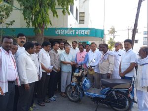बहुजन ऱ्हदयसम्राट श्रद्धेय वंचित बहुजन आघाडीचे संस्थापक अध्यक्ष बाळासाहेब आंबेडकर यांच्या वाढदिवसानिमित्त अकोट तालुक्यातील आकोलखेड येथील सरपंच दिगंबर पिंप्राळे यांना स्वतः बाळासाहेब आंबेडकर यांच्या हस्ते चाबी देऊन गाडी भेट देण्यात आली.पिंप्राळे घरदार वीज नसणारे एकमेव सरपंच होते.बाळासाहेब आंबेडकर यांचा वाढदिवस स्वाभिमान दिवस म्हणून साजरा केल्या जातो.वाढदिवसाचे औचित्य साधून सरपंच दिगंबर पिंप्राळे यांना टीव्हीएस एक्सएल १०० ही गाडी भेट म्हणून देण्यात आली.थेट जनतेतून निवडून येऊन सरपंच पदापर्यंत पोहचणारे सरपंच दिगंबर पिंप्राळे यांच्याकडे कोणत्याच प्रकारचे वाहनाचे साधन नव्हते.ते स्वतःपायी वाटचाल करीत होते.परंतू बाळासाहेब आंबेडकर यांचा वाढदिवस आगळ्या वेगळ्या पध्दतीने साजरा करण्यासाठी सरपंचाला दिलेली गाडी अनोखी भेट ठरली.यावेळी ओबीसी नेते बालमुकुंद भिरड,ओबीसी नेते गोपाल राऊत,ओबीसी नेते ॲड.संतोष रहाटे,वंचितचे जिल्हाध्यक्ष प्रमोद देंडवे, जिल्हा महासचिव मिलींद इंगळे,जि.प.उपाध्यक्ष र