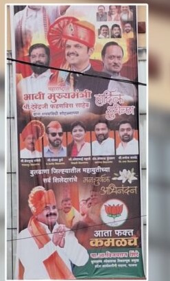या बॅनरवर महायुतीतील आ. संजय कुटे, आकाश फुंडकर, श्वेता महाले, चैनसुख संचेती, मनोज कायंदे या यशस्वी