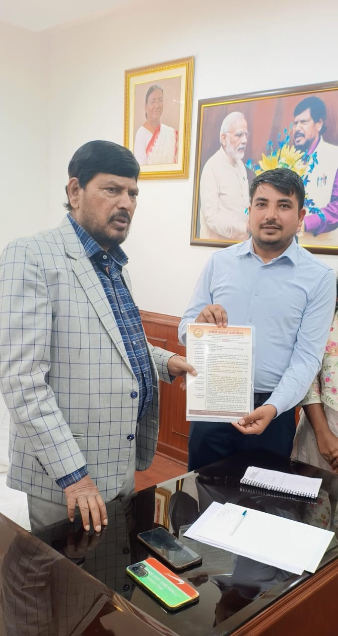रामदास आठवले यांच्याकडे केली. नवी दिल्ली येथील कार्यालयात चर्चा करुन निवेदन सादर करण्यात आले.