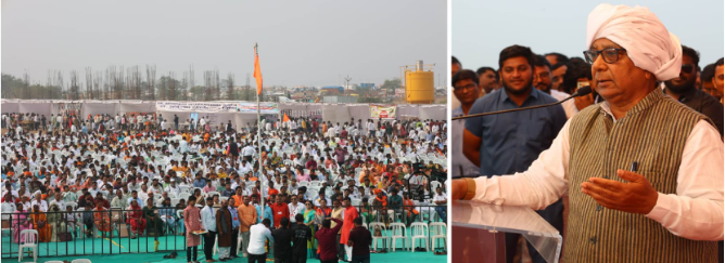 सिंदखेडराजा येथे जिजाऊ सृष्टीवर भव्य जिजाऊ जन्मोत्सव सोहळा पार पडला. राष्ट्रमाता जिजाऊ जनमोत्सव सोहळ्यात मराठा सेवा संघाचे संस्थापक शिवश्री पुरुषोत्तम खेडेकर यांनी शिवधर्म पिठावून उपस्थितांना संबोधित करतांना म्हटले की, मला सांगताना आनंद होतो की, भारतीय संविधानाचे अमृत महोत्सव वर्ष सुरू आहे आणि माझे सुध्दा अमृत महोत्सव वर्ष सुरू आहे. जगाच्या पाठीवर भारतासह अगदी आपल्या जिल्ह्यातही आणि राज्यातही अनेक लोक तोंडामध्ये सोन्याचे, चांदीचे चमचे घेऊन जन्माला आलेले आहेत. पण पुरुषोत्तम खेडेकर एकमेव असा आहे की, जो हातामध्ये संविधान घेऊन जन्माला आलोय असं म्हणलं तरी हरकत नाही, असे सांगून खेडेकर यांनी लोकशाही व संविधानाचं जोरकसपणे समर्थन केलं. केंद्रीय आयुष आरोग्य व कुटुंब कल्याण राज्यमंत्री प्रतापराव जाधव यांनी व्यक्त केलेल्या खंते बद्दल, या जिजाऊ सृष्टीवर नेहमीसारखा गर्दीचा लोट दिसत असला तरी त्यात पाहिजे त्याप्रमाणे मध्ये शिस्त वाढवता आली नाही. याबद्दल आपल्याला पुढच्या कालखंडामध्ये काम करावं लागणार आहे. आजच्या या ४२७ व्या जिजामातेच्या जयंती निमित्त आणि माझ्या अमृत महोत्सवी सत्कार निमित्त या जिजाऊ सृष्टीवरील या भव्य-दिव्य कार्यक्रमाचे अध्यक्ष मराठा सेवा संघाचे अध्यक्ष इंजिनिअर विजय घोगरे यांच्या हस्ते करण्यात आला. मराठा सेवा संघ हा काही मी एकट्याने केला अशातला भाग नाही. जसा शिवराज्याबद्दल किंवा छत्रपती शिवाजी महाराजांच्या स्वराज्याबद्दल बोललं जातं. महाराज सांगायचे की, हे स्वराज्य निर्माण केले हे जरी खरं असलं त्यातला व मीएक असलो तरी मावळे जे आहेनायांचे योगदान यामध्ये आहे. जीवाची परवा न करता जे काही लढलेले आहे. त्यांचं काम मोठे आहे. त्यामुळे तुम्ही सर्वांनी जो काही माझा सत्कार केल हा एकटा पुरुषोत्तम खेडेकर, रेखाताई खेडेकर, स्वप्निल, सौरभ, स्नेहाचा नाही तर सर्वांचाच यामध्ये वाटा आहे, याचा मला अभिमान वाटतो. आपल्याला सर्वांना पुन्हा-पुन्हा सांगतो की, स्वतःहून स्वतः च्याबळावर आपण उभेराहिले पाहिजे. सदरील जिजाऊ जन्मोत्सवासाठी केंद्रीय आयुष आरोग्य व कुटुंब कल्याण राज्यमंत्री खासदार प्रतापराव जाधव, जालन्याचे आमदार अर्जुनराव खोतकर, मेहकरचे आमदार सिध्दार्थ खरात, सिंदखेडराजा चे माजी आमदार शशिकांत खेडेकर, चिखलीच्या माजी आमदार सौ. रेखाताई खेडेकर व मराठा सेवा संघ, संभाजी ब्रिगेड, जिजाऊ ब्रिगेड चे महाराष्ट्रभरातून आलेले कार्यकर्ते उपस्थित होते. कार्यक्रमासाठी राज्याच्या कानाकोपऱ्यातून आलेल्या हजारो जिजाऊ भक्तांची मोठ्या प्रमाणात गर्दी जमली होती.