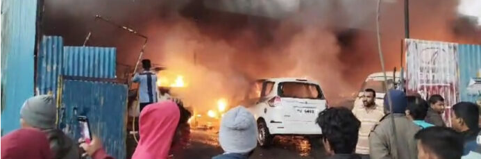 मलकापुरातील गॅरेजमध्ये अग्नितांडव : आगीत 13 चार चाकी “स्वाहा”70 ते 80 लाखाचे नुकसान..