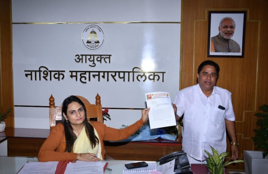 माननीय जिल्हाधिकारी साहेब यांना देण्यात आली तसेच नवीनच नाशिक महानगरपालिका येथे आयुक्त पदावर श्रीमती मनीषा खत्री मॅडम रुजू झाल्याबद्दल शाल पुष्पगुच्छ व सिन्नर येथील पुरातन गोंदेश्वर मंदिराची प्रतिमा भेट देण्यात आली.दि.