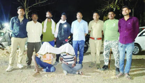गिरडा १ बीट राखीव जंगल क्षेत्रात आग लावताना दोन आरोपींना वनविभागाच्या पथकाने कारवाई करत रंगेहाथ पकडले. आरोपीवर भारतीय वन अधिनियमानुसार गुन्हा दाखल करण्यात आले असून त्यांना अटक करण्यात आले असल्याची माहिती वनपरीक्षेत्र अधिकारी ए.एन. ठाकरे यांनी दिली.वन विभागाच्या कारवाईमध्ये आरोपी रतन मनोहर राठोड (वय ६०) पळनये नाईक, बुलडाणा व रामेश्वर श्रीचंद राठोड (वय ३२) रा. हनवतखेड, ता. मोताळा, जि. बुलडाणा यांना अटक करण्यात आले. या आरोपींविरुद्ध भारतीय वन अधिनियम १९२७ चे कलम २६ (१) (बीसीडीई), ५२, ६१ अ, ६५ अ तसेच सार्वजनिक हानी प्रतिबंधक अधिनियम १९८४ चे कलम ४ अंतर्गत गुन्हा (क्रमांक-१५८३९/०१) दाखल करण्यात आले. तसेच दोन्ही आरोपींना प्रथम वर्ग न्यायालय, बुलढाणा येथे हजर करण्यात आले असता, त्यांना एक दिवसाची वन कोठडी सुनावण्यात आली. कायद्यानुसार, अशा गुन्ह्यांसाठी १ ते १० वर्षे शिक्षेची तरतूद आहे. सदर कारवाई विभागीय वन अधिकारी दक्षता तथा जिल्हाधिकारी डॉ किरण पाटील, उपवनसंरक्षक सरोज गवस व सहाय्यक वनसंरक्षक आश्विनी आपेट यांच्या मार्गदर्शनाखाली वनपरिक्षेत्र अधिकारी (प्रादेशिक) ए. एन. ठाकरे, वनरक्षक गिरडा बीटचे प्रदीप प्रकाश मुंढे, वनरक्षक व्ही. जी. राऊत, बी. ए. घुले, वाहन चालक संदीप मडावी, रविंद्र तायडे, दीपक सोनुने, अरुण पंडित, अमोल चव्हाण, जितेंद्र सोनुने सहभागी होते. तसेच प्रकरणाचा पुढील तपास वनपाल एस. डी. वानखडे करतील. नागरिकांनी जंगलात आग लावू नये तसेच पर्यावरणाचे नुकसान करण्यावर कायदेशीर कडक कारवाई केली जाईल, असे आवाहन वन विभागाव्दारे करण्यात आले आहे.
