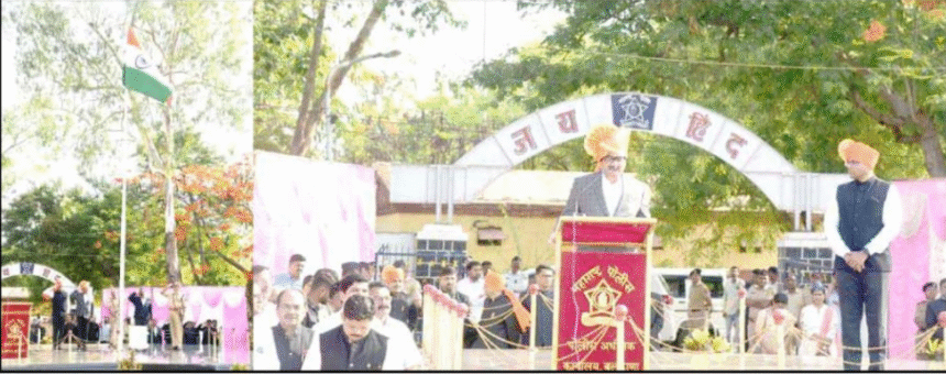 राज्याच्या सर्वांगीण विकासासाठी आणि सर्व राज्यांसाठी शासन कटिबद्ध आहे. सर्व एकजुटीने आणि समन्वयाने काम करू या आणि ढाकणा प्रश्रमच्या विकासाच्या उंचीवर नेऊ या, असे प्रतिपादन मदत व पुनर्वसन मंत्री तथा विरोधाचे पालकमंत्री ना. मवनंद जाधव पाटील यांनी महाराष्ट्र दिनी केले.पोलीस कवायत मैदान येथे १ में महाराष्ट्राच्या ६६ व्या स्थापना दिन व दिनानिमित्त मुख्य ध्वजारोहण कार्यक्रम पार पडला, ते बोलत होते. डॉक्टर डॉ. किरण पाटील, कार्यकर्ता मुख्य अधिकारी गुलाब खरात, पोलिस अधिकारी विश्व पान, अतिरिक्त अतिरिक्त सुंदे, अपरधीस कर्जदार डॉ.. उपजिल्हाधिकारी, जयश्री ठाकरे, पोळेंद्र पोळ, समाधान गायकवाड, अजिक गोडगे, सैनिक विजयराज सेना, स्वातंत्री, वीरमाता, वीरपत्नी, श्रेष्ठ नागरिक, विद्यार्थी व स्थानिक विद्यार्थी आणि मोठ्या नागरिकांनी.पालक मंत्री श्री. पाटील म्हणाले, गांधी शेतकरी शेतकरी शेतीपूरक व्यवसाय विकासासाठी महात्मा ग्रामीण उभारणीसाठी आम्ही भाऊसाहेब कुंडकर व फळबाग लागवडीची आशा ४ हजार क्षेत्रावर फळबागेची लागवड केली असून शेतीपूरक व्यवसायाला मोठ्या शेतक-याचे उत्तर देत आहेत.पीएम कृषी योजना, मुख्यमंत्री शाश्वत भारतीय योजना आणि अटल भूजल हजारांत सुमारे ३३ लाभार्थीना सुमारे ७९ कोटी रुपये अनुदान वितरीत करण्यात आले आहे. तसेच पीएम पीक विमांतर्गत खरीप नैसर्गिक आपत्ती अंतर्गत १ लाख ५० हजार राजकीय विमा १४४ कोटी रुपये करण्यात आले आहेत. अहम पाऊस, गारपीट, अतिप्रमाणात सुमारे ४ लाख वृध्दाचे ३ लाख हेक्टर क्षेत्र शेतीचे नुकसान होते. व्याकरीता सुमारे ४९० कोटी कोटी कोटी मंजूर करून वाटप करण्यात आले आहे. १ व्या हप्त्याचा सुमारे ३ लाख ५० हजार विद्याथ्यांना लाभ मिळाला आहे, असे त्यांनी सांगितले,पालक मंत्री ना. विकास, कृषी विभागाच्या योजनांचा लाभ आला शेतकरी निवडला जात आहे. आपल्याकडील ४७ हजार शेतकरी फार्मर आयडी तयार आहेत. ज्या शेतकरी बांधवांनी अजूनही आपला फार्म आयडी तयार केला नाही, असे शेतकरी सरकारचे नियोजन वंचीत होऊ शकतात, आपणास लवकर आपले उमेदवार उमे करून, असे आवाहन त्यांनी केले.के द्रस्थानी पाणीसाठ्याची सध्याची स्थिती विचारात, उन्हाळ्यात विजेच्या पाण्याचा मात करण्यासाठी योग्य आणि प्रभावी स्थिती कैल्या आहेत. यपाणी आडवा पाणी जिरवाफआणि यगाळ मुक्त धरण, गाळयुक्त शिवारफत्यांचे सामने महत्त्वाकांक्षींच्या तीव्र अक्षरे योजना धरणे आणि नद्यमोक्षी गाळ काढण्याचे काम युद्धपातळीवर सुरू आहे. सध्या संपूर्ण १९ लक्षणातील काढण्याचे काम प्रगतीपथावर आहे. मुख्यमंत्री सौर कृषीवाहिनी अग्रांतर्गत दोन हजार एकरात ९१ उपकेंद्रांद्वारे ४०१ मेगावॅट वीजेचे उद्दिष्ट समोर आले आहे. या प्रकल्पातून शेत