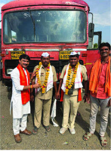 पिंपळगाव राजा एसटी बस रोहना मार्गे काळेगाव, भालेगाव, पिंपळगाव राजा बस सुरू करण्यात आल्याने विद्यार्थ्यांसह नागरिकांची होणारी गैरसोय थांबली असून शिवसेना तालुका प्रमुख बघे यांच्या मागणीला देखील यश आले आहे. रस्ता नादुरुस्त असल्यामुळे बंद असलेली बस काळेगाव भालेगाव मार्गे सुरू करण्यात आली आहे. खामगाव पिंपळगाव राजा रस्त्याचे नियोजन शून्य काम सुरू असून त्याच कारणाने एसटी महामंडळाने बस बंद केली होती. सदर बस सेवा पूर्ववत सुरू करण्यासाठी शिवसेना तालुकाप्रमुख राजेंद्र बघे व शिवसेना उपतालुका प्रमुख गोपाल भील यांनी डेपो मॅनेजर अकोट यांची भेट घेऊन निवेदन दिले होते व पर्यायी मार्ग काळेगाव भालेगाव मार्गे बस सुरू करावी, अशी मागणी केली होती. दरम्यान या मागणीची दखल घेत ९ मे रोजी रोहना मार्गे काळेगाव, भालेगाव, पिंपळगाव राजा बस सुरू करण्यात आली. त्यानिमित्ताने बस स्थानक खामगाव येथे शिवसेना तालुकाप्रमुख व उपतालुकाप्रमुख यांनी चालक वाहक यांचा सत्कार करून पहिली फेरी पाठवली. त्याच बस फेरीचे काळेगाव वासियांनी सुद्धा स्वागत केले. यावेळी अनिल मुंढे, अनंता वाकुडकार, ज्ञानेश्वर पाटील, साठे बुवा, रुतीक राणा, प्रतीक वाकुडकार, राजू गोडे उपस्थित होते बस फेरी सुरू झाल्याने विद्यार्थी व ज्येष्ठ नागरिक यांची होणारी गैरसोय टळली आहे.