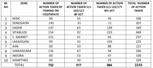 सबसे अधिक कार्रवाई इंडोरा, सदार, सिविल मार्केट और सीताबर्डी ज़ोन में हुई है।