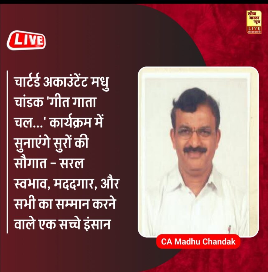 चार्टर्ड अकाउंटेंट मधु चांडक ‘गीत गाता चल…’ कार्यक्रम में सुनाएंगे सुरों की सौगात – सरल स्वभाव, मददगार, और सभी का सम्मान करने वाले एक सच्चे इंसान