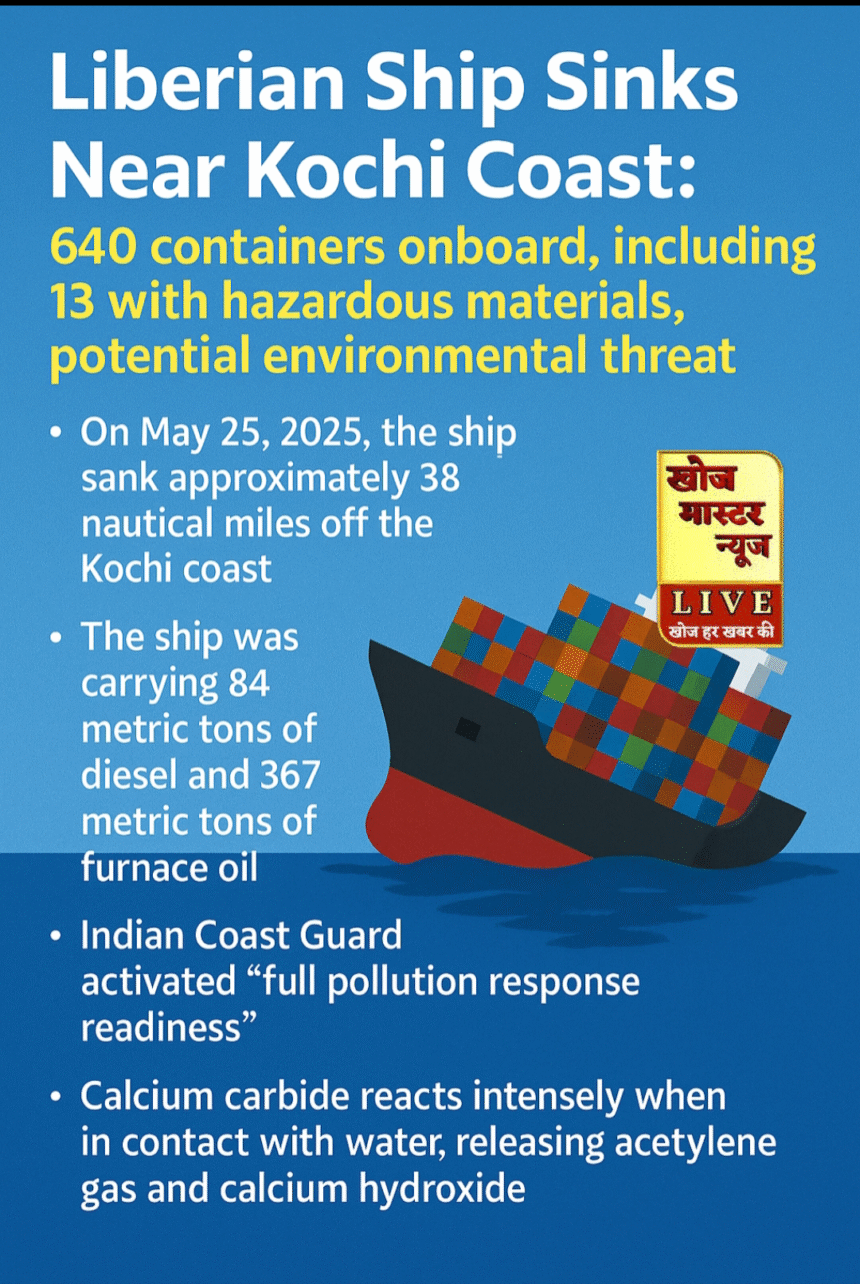 कोच्चि तट के पास लाइबेरियाई जहाज़ डूबा: 640 कंटेनरों में 13 खतरनाक सामग्री वाले, पर्यावरणीय खतरे की आशंका