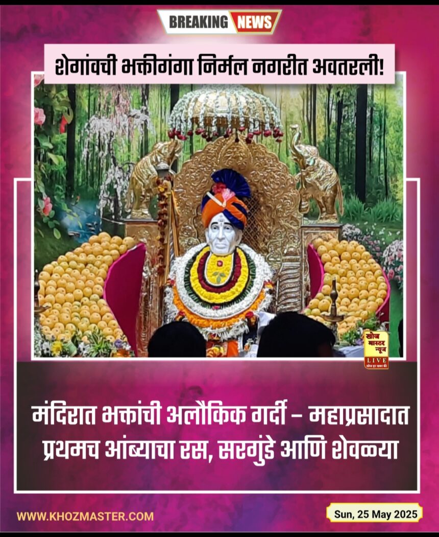 शेगांवची भक्तीगंगा निर्मल नगरीत अवतरली! मंदिरात भक्तांची अलौकिक गर्दी – महाप्रसादात प्रथमच आंब्याचा रस, सरगुंडे आणि शेवळ्या