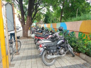 ट्राफिक पुलिस के ऑफिस के सामने ही नियमों की अनदेखी, होटल प्राइड के बाहर टू-व्हीलर की भरमार