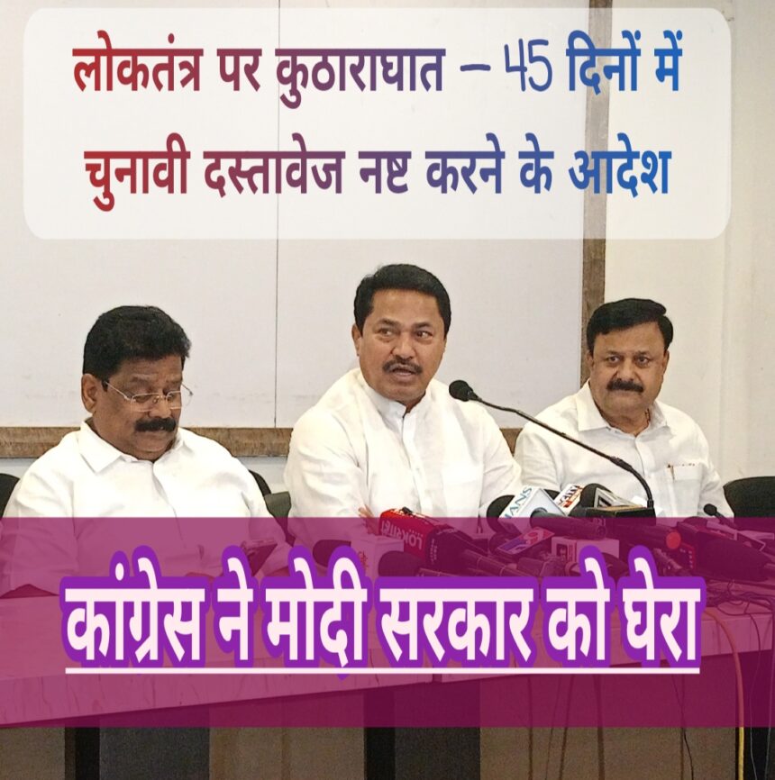 🔹 “इतनी हड़बड़ी क्यों? आखिर सरकार क्या छुपाना चाहती है? अगर सब कुछ पारदर्शी है, तो फिर दस्तावेजों के संरक्षण से परहेज़ क्यों?” — ऐसा सवाल नाना पटोले ने उठाया।