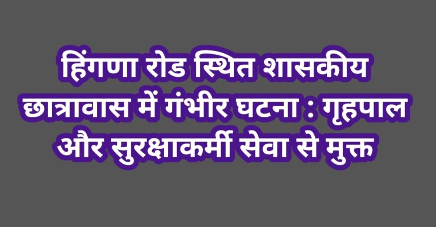 हिंगणा रोड स्थित शासकीय छात्रावास में गंभीर घटना : गृहपाल और सुरक्षाकर्मी सेवा से मुक्त