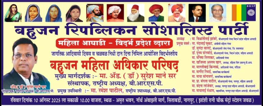 या पार्श्वभूमीवर बहुजन रिपब्लिकन सोशालिस्ट पार्टी (बी.आर.एस.पी) विदर्भ प्रदेश महिला आघाडी तर्फे, बी.आर.एस.पीचे राष्ट्रीय अध्यक्ष एड. डॉ. सुरेश माने यांच्या वाढदिवसानिमित्त, विदर्भ स्तरीय बहुजन महिला अधिकार परिषद आयोजित करण्यात आली आहे.