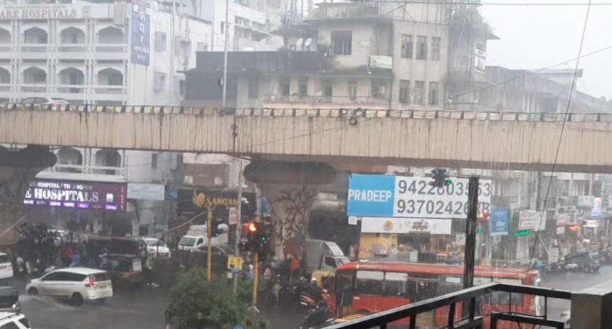 📍 नागपुर शहर में आज दोपहर बारिश ने अपना अजीब और असमान रूप दिखाया।