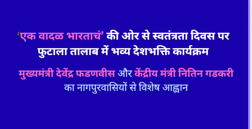 सामाजिक आंदोलन ‘एक वादळ भारताचं’ के 10वें स्थापना वर्ष के अवसर पर, स्वतंत्रता दिवस यानी 15 अगस्त 2025 को सुबह 8 बजे से, नागपुर के प्रतिष्ठित फुटाला तालाब पर एक भव्य और देशभक्ति से ओत-प्रोत कार्यक्रम का आयोजन किया जाएगा।