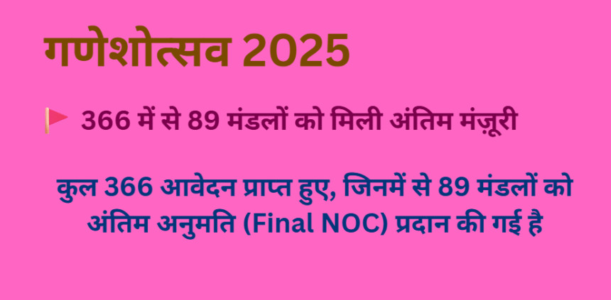 📰 गणेशोत्सव 2025 : 🚩 366 में से 89 मंडलों को मिली अंतिम मंज़ूरी