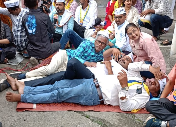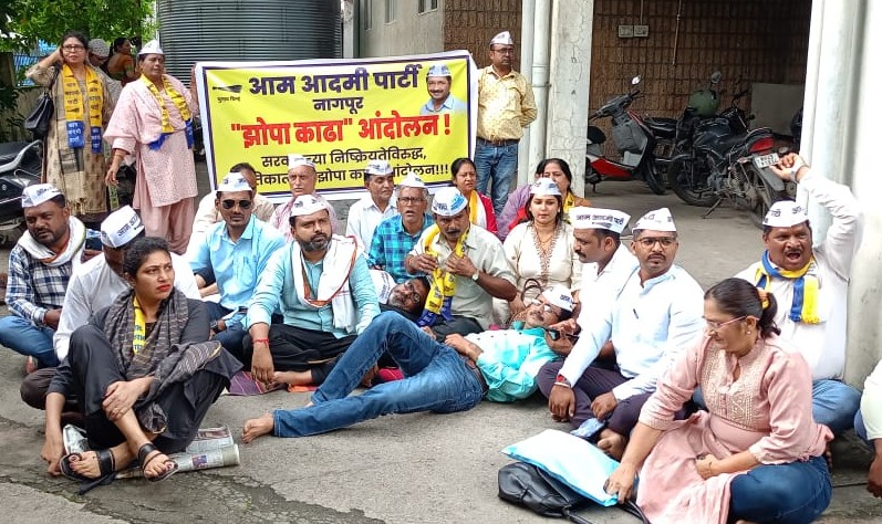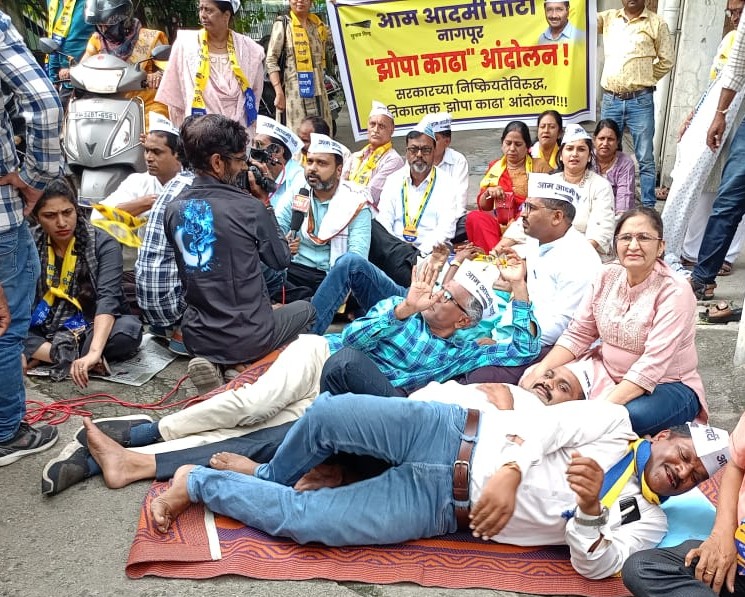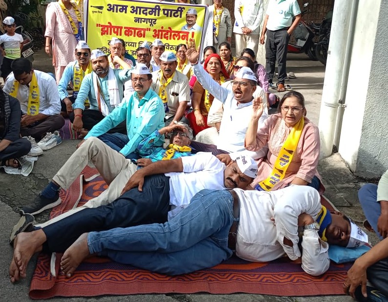 ✨📰 नागपुर : सरकारी स्कूलों की बदहाल स्थिति के विरोध में आम आदमी पार्टी का “झोपा काढा आंदोलन” ✨