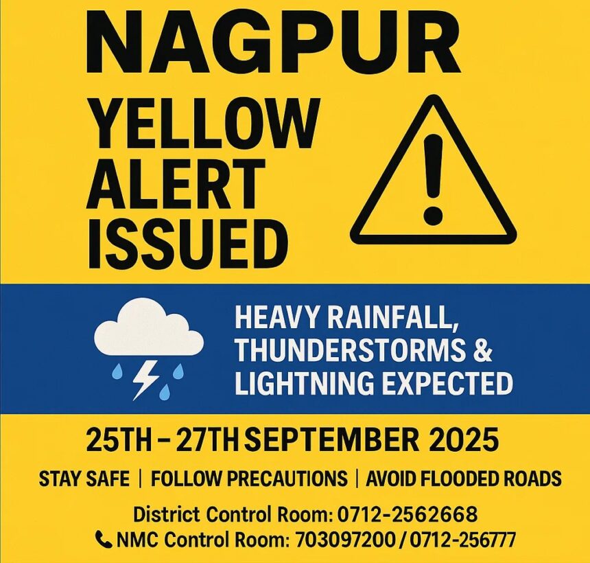 ЁЯУЕ 25 рд╕реЗ 27 рд╕рд┐рддрдВрдмрд░ 2025 рдХреЗ рджреМрд░рд╛рди рднрд╛рд░рддреАрдп рдореМрд╕рдо рд╡рд┐рднрд╛рдЧ рдиреЗ рдирд╛рдЧрдкреБрд░ рдЬрд┐рд▓реЗ рдХреЗ рд▓рд┐рдП рдпреЗрд▓реЛ рдЕрд▓рд░реНрдЯ рдЬрд╛рд░реА рдХрд┐рдпрд╛ рд╣реИред