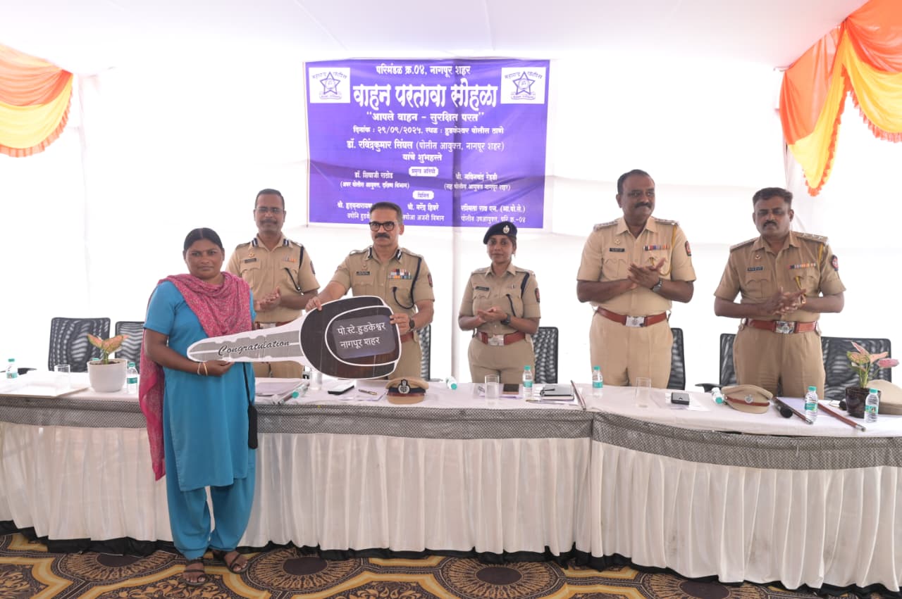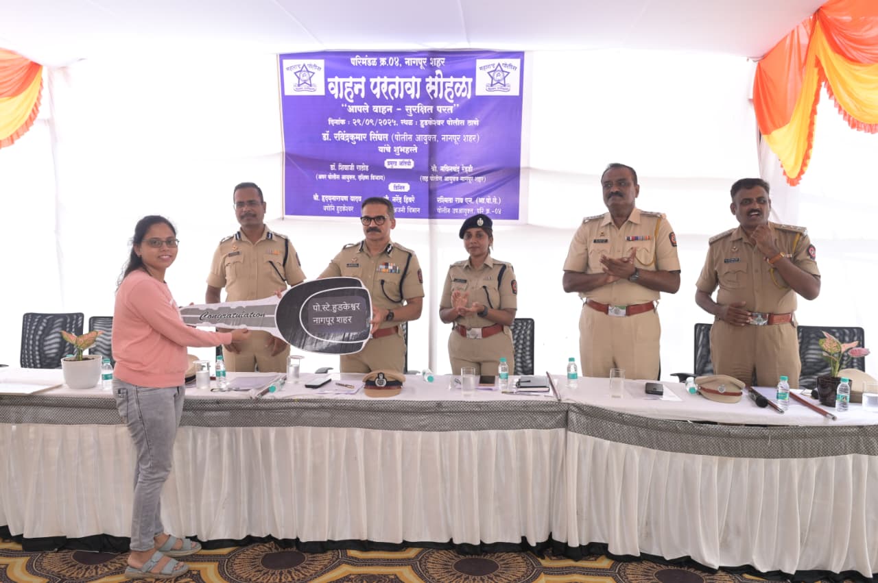 नागपुर, 29 सितम्बर : 🎉 नवरात्र उत्सव के अवसर पर नागपुर शहर पुलिस ने नागरिकों को विशेष उपहार दिया। परिमंडल क्र. 4 के अंतर्गत हुडकेश्वर थाना परिसर में आयोजित ‘वाहन वापसी समारोह’ में चोरी हुई गाड़ियाँ उनके वास्तविक मालिकों को सौंप दी गईं।