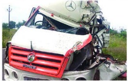 झाला. तर लक्झरी बसचा चालक रमेश काळूराम मरमट (वय ३१, रा. सोनपवाडी, ता. सिल्लोड) आणि अन्य चार प्रवासी जखमी झाले. लक्झरी बसचा अक्षरशः चुराडा झाला असून, ट्रक सुमारे १५ फूट पुढे ओढला गेला.